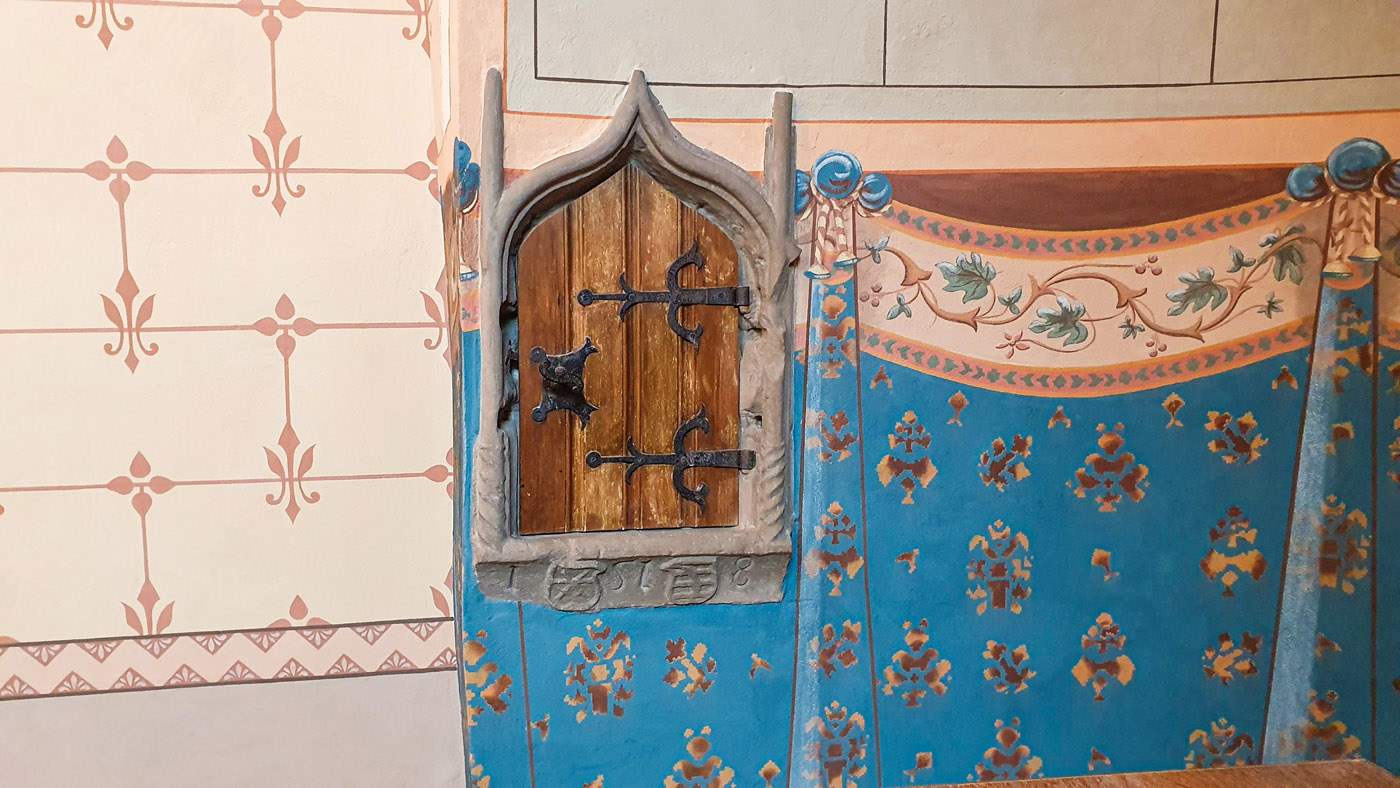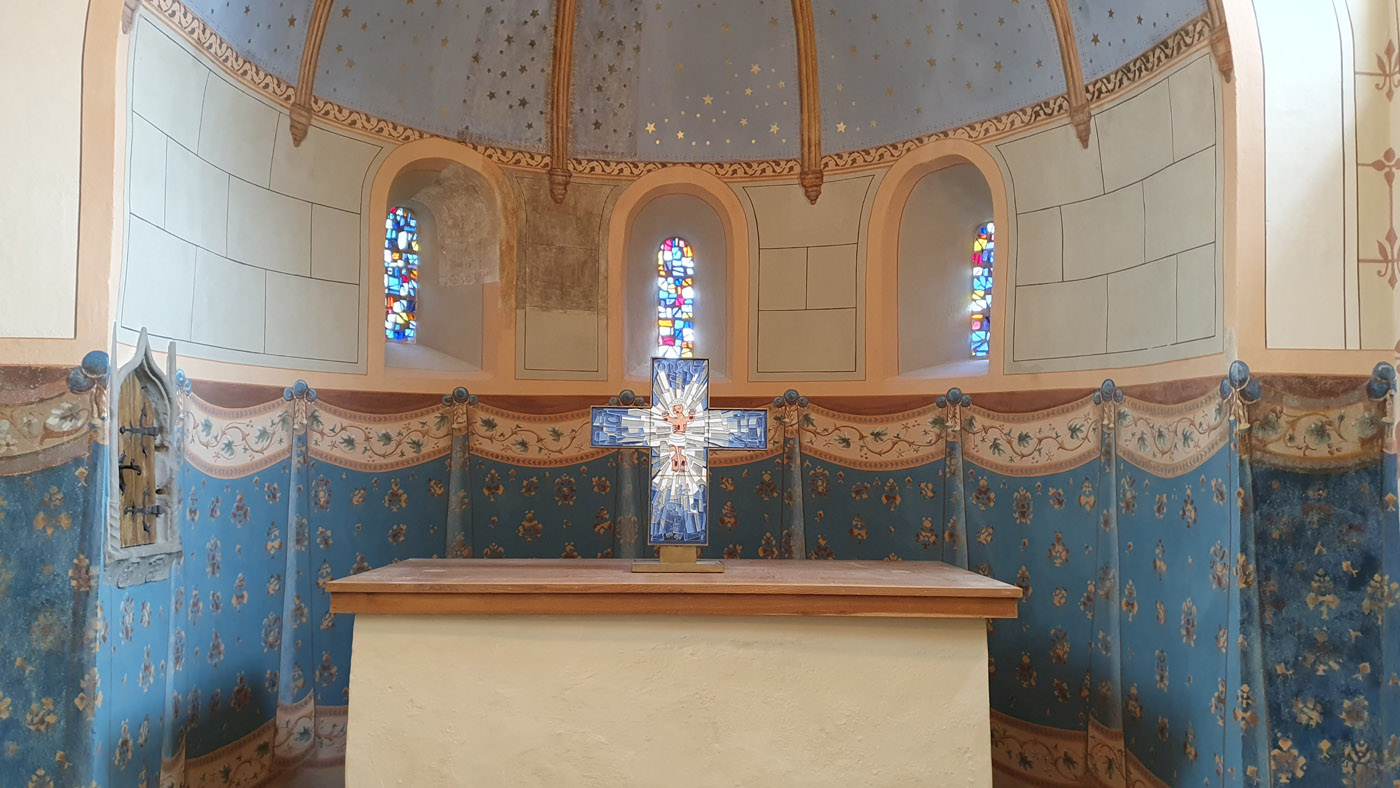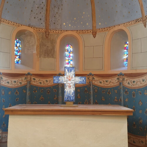 Das Altarkreuz aus dem Jahr 1968 ist in aufwendiger Emailtechnik gestaltet.