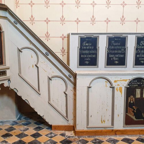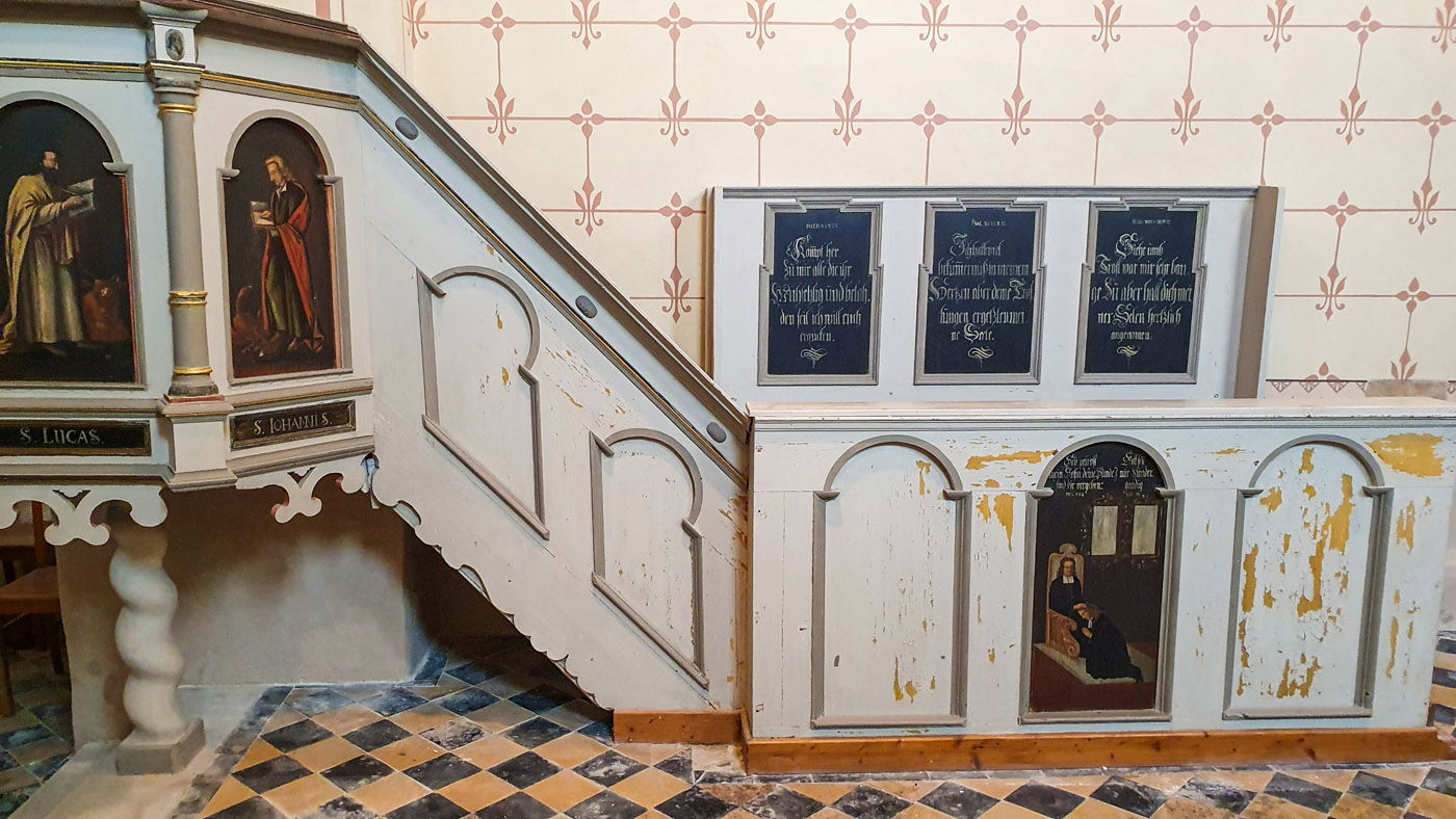 Aus dieser Zeit stammt auch das Altarbild von Johann Amberger. Der Hochaltar selbst ist nicht mehr vorhanden. Das Bild der Kreuzigung befindet sich an der Seitenwand der Kirche, die Predella mit der Abendmahlsdarstellung in der Winterkirche.